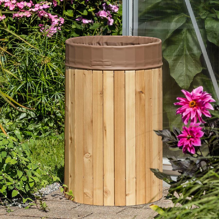 Das Regenfass hat als Innenauskleidung eine hochwertige, starke, schadstofffreie Folie in Trinkwasserqualität. Die Holzwandung dient diesem Wasserbehälter als Stützgerüst.