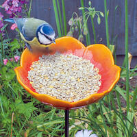Die anmutige Keramik-Blume ist sowohl wundervolle Dekoration im Garten oder auf dem Balkon als auch ideale Versorgungsstation für Gartenvögel aller Art.