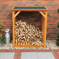 Stabile Ausführung aus massivem, wetterfest imprägniertem Kiefernholz. Das Dach ist mit Dachpappe gedeckt. Das Kaminholz-Regal lässt sich seitlich beliebig erweitern.