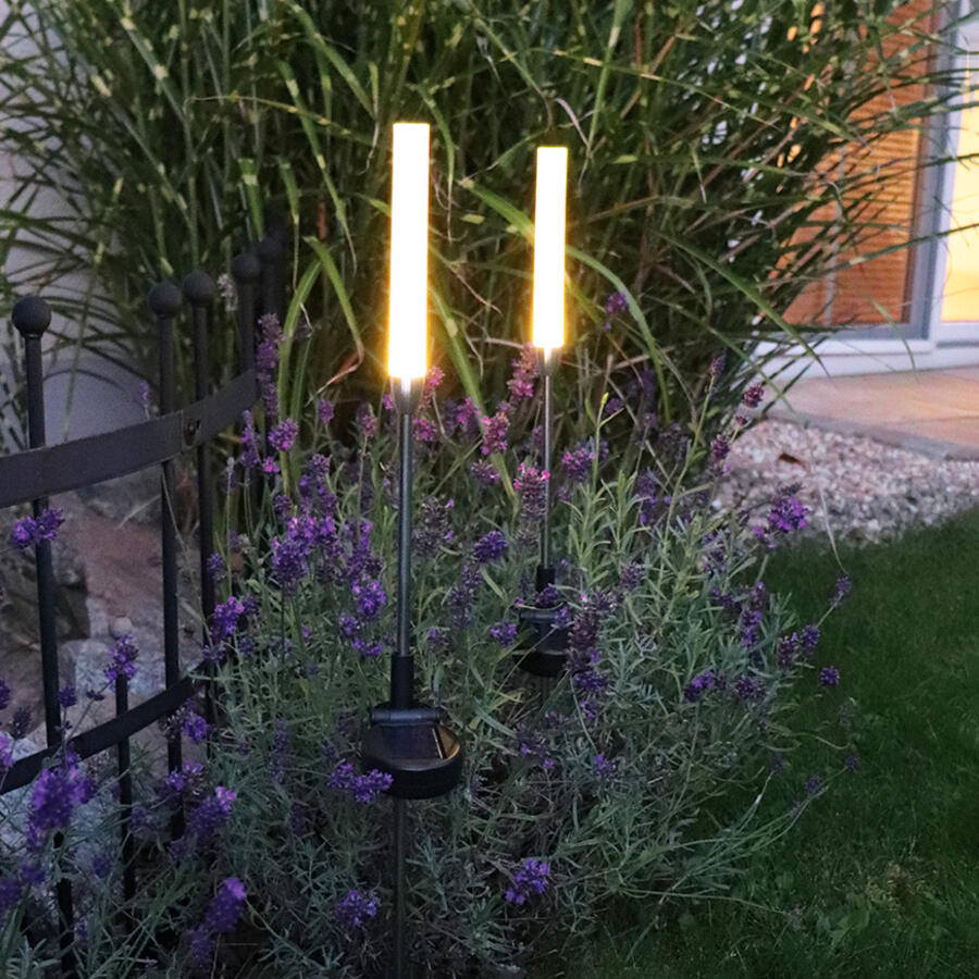 Die Solar-Steckleuchte setzt Akzente rund um die Terrasse, im Eingangsbereich, im Blumenbeet und am Gartenteich. Zu Beginn der Dämmerung erstrahlt der edle Leuchtkörper automatisch in warmweißen Licht. Leuchtdauer bis zu 8 Stunden. Zusätzlich manueller Ein-/Aus-Schalter.