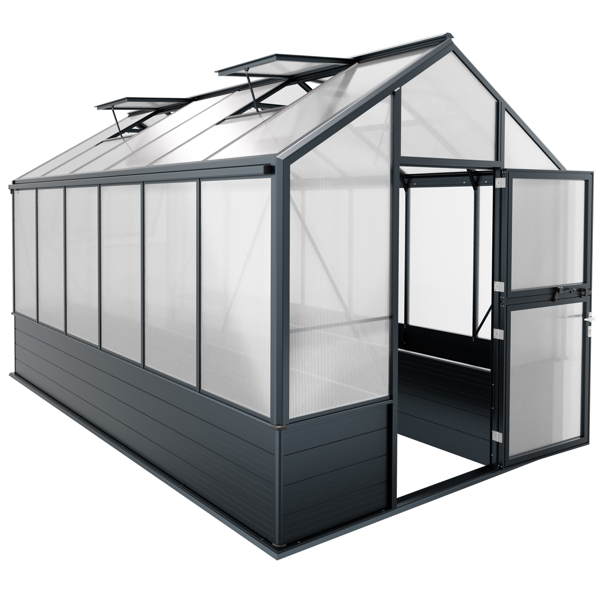 Damit Ihre Pflanzen nicht nur gut geschützt sind, sondern auch bestmögliche Bedingungen im Gewächshaus herrschen, spielt die Verglasung und Belüftung eine wichtige Rolle. Alle Glasflächen und Öffnungen sind besonders großzügig konzipiert.