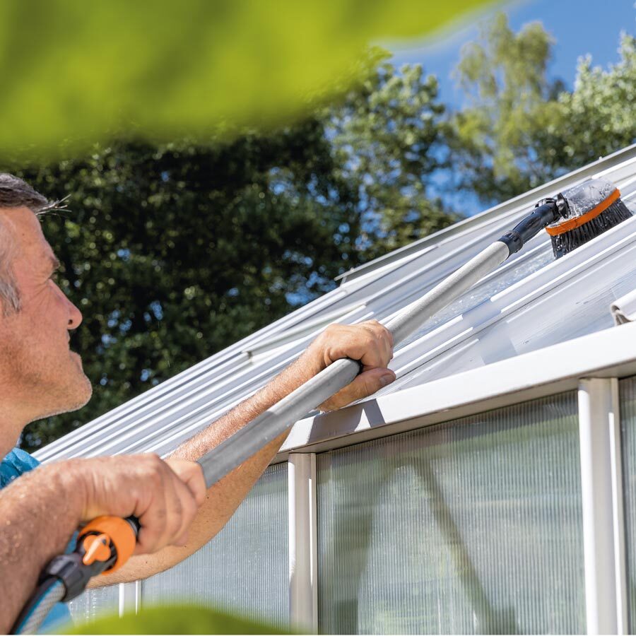 Licht ist im Winter eher "Mangelware". Um es optimal einzufangen und zu nutzen, sollten die Scheiben des Gewächshauses – egal ob sie aus Glas oder Hohlkammerplatten bestehen – sauber sein. Praktische Hilfsmittel wie eine rotierende Waschbürste leisten dabei gute Dienste. Bei hartnäckigen Verschmutzungen können Sie etwas Kaliseife verwenden. Lesen Sie zum Thema Bodenpflege und Reinigung auch unseren Ratgeber "Frühjahrsputz im Gewächshaus" .